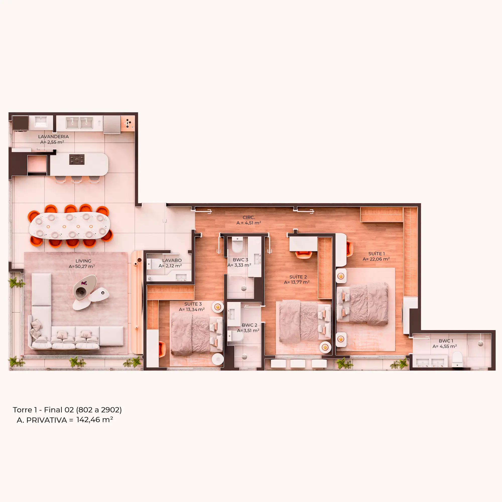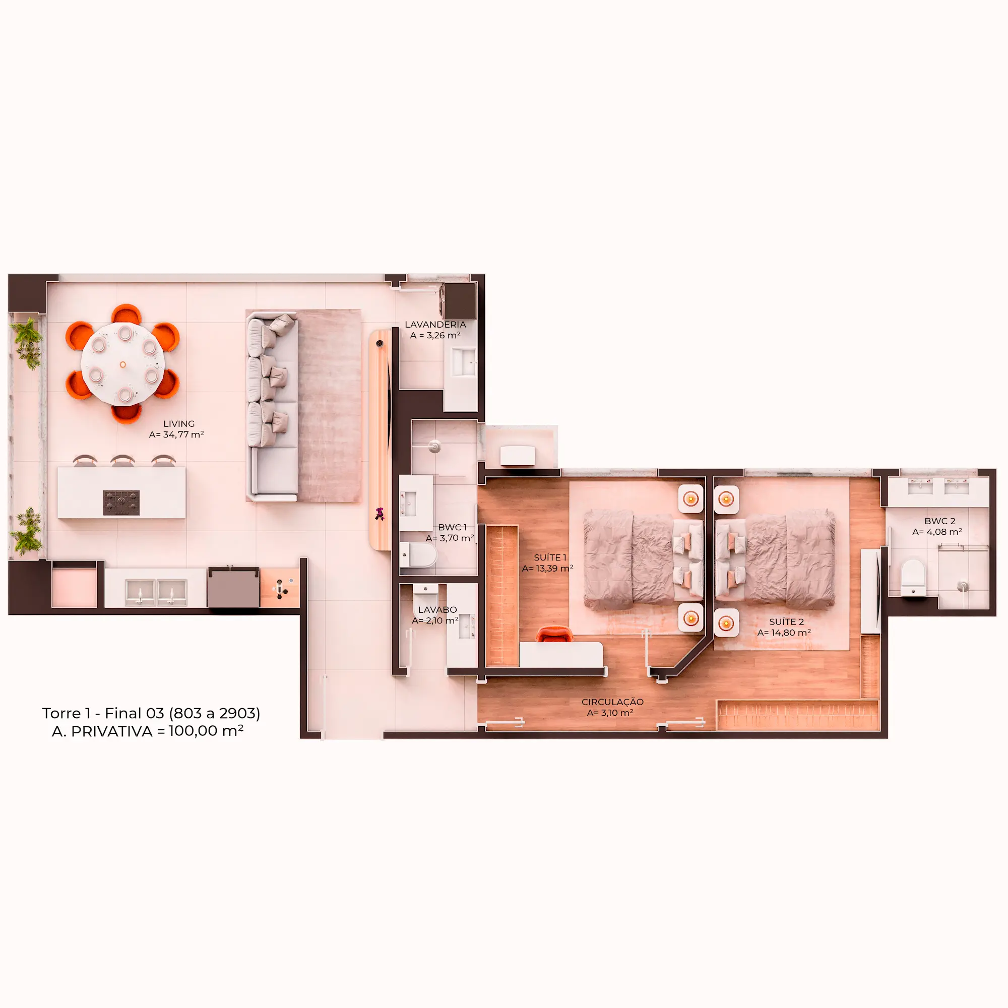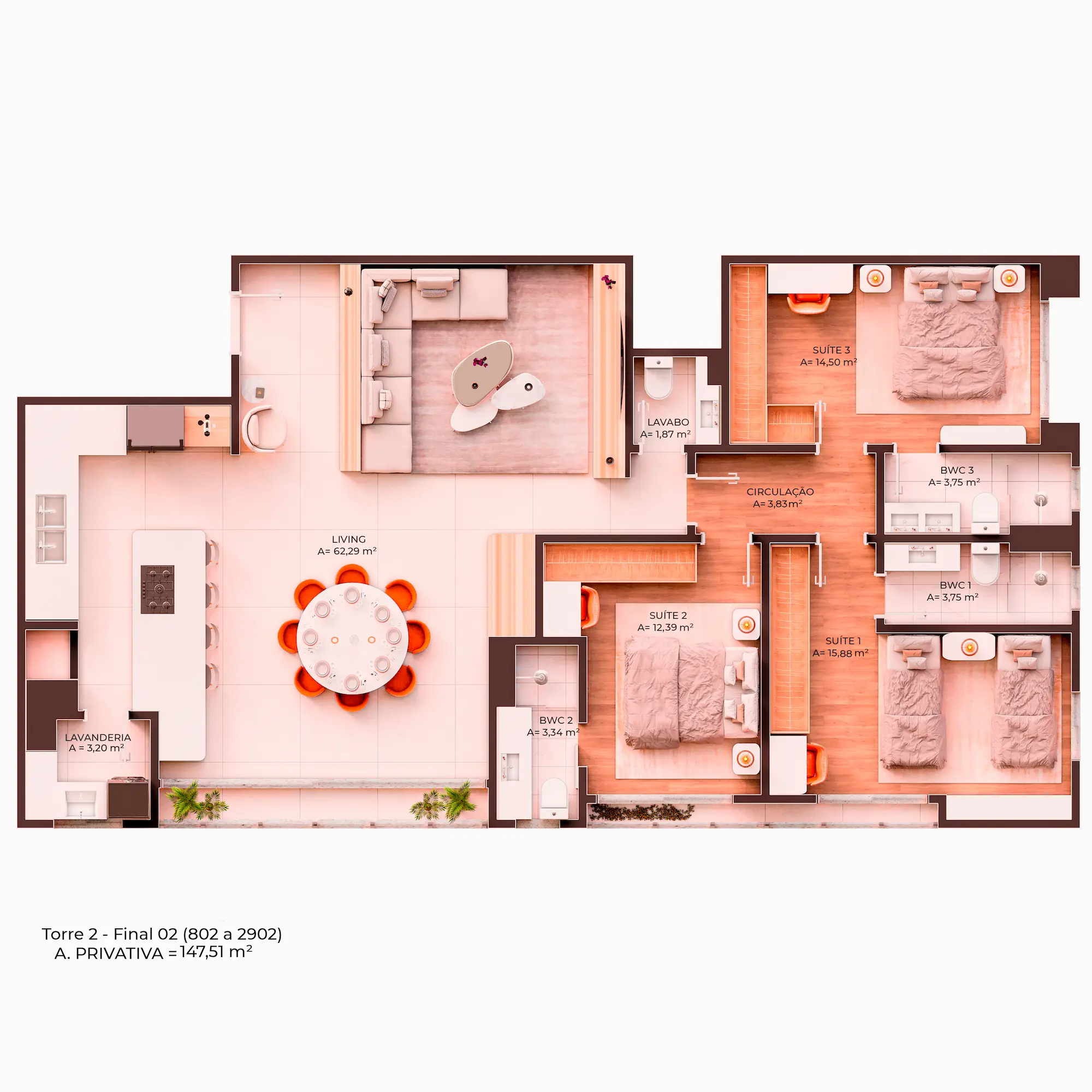 COM 2 A 3 SUÍTES, DE 100 M² A 147,51 M²